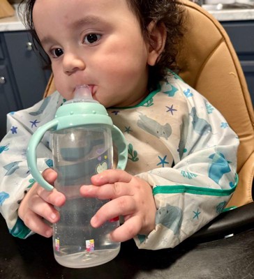 [This review was collected as part of a promotion.] Received this product in exchange for my honest opinion. I will start off this review by saying that I know every child is different. Developmentally babies move at different rates. Also some products that work for my kid, may not work for others. That being said this cup was rather difficult for my 11 month old to use, but also the cup was difficult for myself a 35-year-old adult to use. No matter how much my kid tried to drink nothing was coming out of the top. Since he is in the process of transitioning bottle to different cups I figured it was just user error. For science I tried myself and no matter how hard I tried I got about one squirt of liquid out of the bottle. Not sure if it’s defective on my end, or it’s just not meant to be. Some pros, bottle comes with the handles for easy baby holding. Bottle can be filled with a good amount of liquid. Bottle is sturdy and nice to travel with, if only we could use it. Peppa picture is cute too.