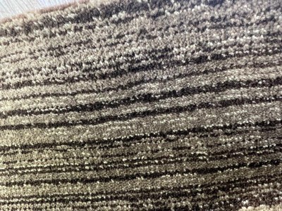 [This review was collected as part of a promotion.] Probably going to be a good rug for hiding dirt.The combination of brown and dark beige seems very forgiving. The pattern is medium size so you can see the striped pattern visibly but it's not overwhelming. I personally think that the pattern would look better if it ran the long way of the rug rather than the short way.