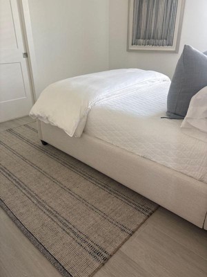 [This review was collected as part of a promotion.] The texture and design was exactly what I was looking for. It’s natural fibers/wool and doesn’t shed. Looks and feels like a 1k+ rug. The stripes give a bit more interest than plain jute too. 10/10!