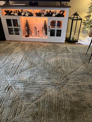 [This review was collected as part of a promotion.] The photos made this rug look olive colored which is what I wanted, but it looks more silvery sage in our home and I am not a fan.