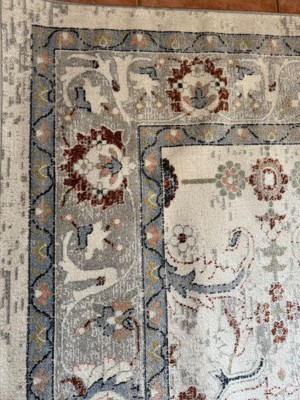 I ordered this online even with no reviews because it was just so pretty! I've only had it in my house for a day so I can't speak to the durability yet, but the pattern is beautiful. It's pretty thin so I did get a rug pad to go with it and I think it's perfect like that. I like that it is not very plush, it makes me feel like it will last longer and hold up to two dogs and a toddler. For some reason, it's showing up looking more gray in the pictures but in person it is very true to the colors online.