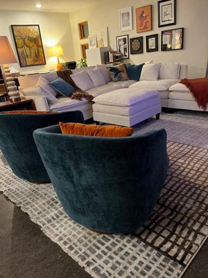 Ordered this rug hoping it would work in our decor. We are so happy! It has a contemporary vibe with a structural design. It pulled the room together. The colors are more vibrant IRL than on the website. It's folded when delivered so lay it out and give it room to relax. We steamed it to help soften the creases. Every day we thank ourselves for this purchase.