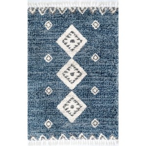 Nuloom Regina Geometric 3x5 Accent Shag Indoor Area Rug for Living Room Bedroom Dining Room Nursery Entryway, Blue/Ivory
