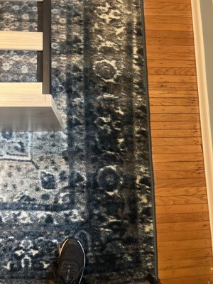 [This review was collected as part of a promotion.] Very pretty. It is a bit bluer than the online pictures. It was expecting that as I read some of the reviews. Very pretty rug! So far, pleased with my purchase.