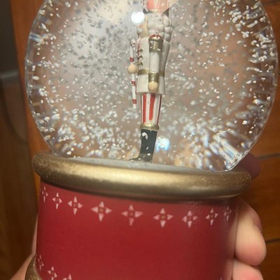 [This review was collected as part of a promotion.] This is a very classic nutcracker snow globe to add to your holiday decor. The snow globe has a sled winding knob on the bottom which plays ‘The Nutcracker Suite’ which pairs well with the interior. There is no motor which keeps the snow flowing. If you want to see the snow you need to shake it manually. There is no light in the globe. The top is glass and has a sturdy build.