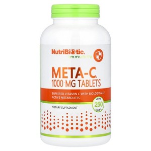 Buffered Vitamin C with Biologically Active Metabolites Dietary Supplement Vegan Made With Non-GMO Ingredients Gluten Free Not Tested On Animals Naturally Fresh Nitro®Pak Bacteria Free Environment pH 7.2‡ Rapid Dissolving NutriBiotic® Meta-C® is a unique, buffered vitamin C with biologically active metabolites from spirulina, a singe-celled, blue-green algae rich in nutrients. Meta-C Tablets are rapid dissolving and absorbs fast and efficiently. Meta-C is produced by water-processing Vitamin C and calcium with an array of biologically active metabolites at low temperatures. This created a fully reacted calcium ascorbate, which is then combined with spirulina to form an advanced food-bound nutrient system providing all the properties found in concentrated whole foods such as protein, lipids, glycoproteins, lipoproteins, nucleoproteins (RNA/DNA), complex carbohydrates, phytopigments, flavonoids, fatty acids, enzymes, co-enzymes, trace elements, and fiber. Vitamin C and calcium are essential nutrients that provide antioxidant protection to the immune system as well as maintain the health of blood vessels, tissue, cartilage, bones, eyes, and other organ systems. Vitamin C is also required for the biosynthesis of collagen, L-carnitine, and neurotransmitters. The combined positive effects of vitamin C, calcium, and spirulina make Meta-C Tablets an excellent choice for supporting the body's overall health. ‡Measure of acidity/alkalinity (neutral pH is 7.0).