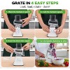 - Shreds cheese, veggies, and more in seconds with minimal effort.