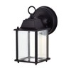 Collection: Cube, Material: Steel, Finish Color: Black, Width: 4.4", Height: 8.7", Depth: 5.9", Backplate Width: 4.57", Backplate Length: 2.91", Lamping Type: LED, Wattage: 8 Watts, Cri: 90, Color Temperature: 3000 Kelvin, Lumens: 620, Dimmable: Yes, Moisture Rating: Dry Rated, Desc: A traditional, lantern-inspired design makes the Cube outdoor wall light perfect for any exterior home style. The black on the fixture body makes matching existing finishes a snap and the clear, beveled glass allows for maximum light output with the integrated LED. Ideal lighting to welcome your guests to your home. A traditional, lantern-inspired design makes this outdoor wall light perfect for any exterior home style. The black on the fixture body makes matching existing finishes a snap and the clear, beveled glass allows for maximum light output with the integrated LED. Ideal lighting to welcome your guests to your home. Featuring a traditional design with a black finish and clear white beveled glass