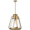 Collection: Everett, Material: Steel, Finish Color: Matte Black, Width: 17.88", Height: 21", Depth: 17.88", Lamping Type: Incandescent, Number Of Bulbs: 1, Wattage: 60 Watts, Dimmable: No, Moisture Rating: Dry Rated, Desc: Glass and overlaying metal create a nice depth with the Everett 60-7554 large pendant. The clear, tapered glass provides 360-degree illuminations. When paired with a vintage bulb, it creates a maritime-vintage style. A matte black finish on the fixture body, rods, and swivel canopy results in a style suited to many kitchen decors or applications of your choosing. Uses one 60-watt incandescent medium base bulb Fixture measures 17.875 inch diameter x 21 inch height Rated for indoor use in dry locations Finished in matte black with clear glass Mounting hardware and installation instructions included Limited one year fixture warranty. Canopy Included: Yes / Canopy Diameter: 5.00 / Rod Length(s): 36.00 / Shade Included: Yes / Shade Dimensions: 14.33 x 14.69. ,