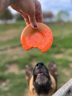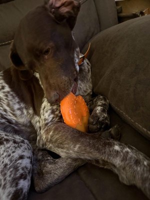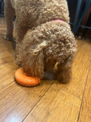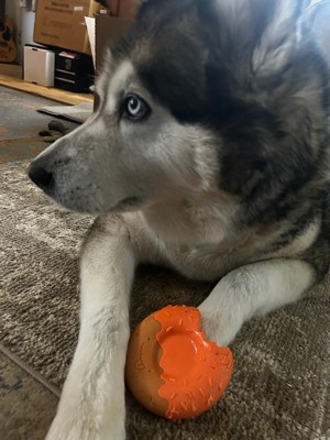 [This review was collected as part of a promotion.] Anything in our house resembling “durable” gets hijacked by my 5-year-old pit bull (who thinks all things are his by birthright). So when I handed this over to my pittie willingly, his face lit up like he just discovered bacon grows on trees. He has officially claimed this toy for the last month, and in doing so, has saved my daughter’s overpriced stuffed animals from being “surgically de-fluffed” It’s durable, bright orange (so I don’t step on it and invent new curse words at 2 a.m.), and apparently deliciously chewable. Highly recommend—10/10, would let my dogs donut again. 🍩🐾