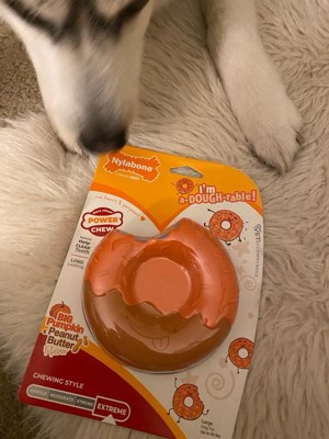 [This review was collected as part of a promotion.] My dog loves this Nylabone Power Chew Donut toy! She knew just what to do with it and got right to chewing. It seems durable and long-lasting. My dog is large and powerful and has spent several days chewing this to little effect. It does has some minor chew marks but seems to be holding up well. It's a heavy and solid chew toy, perfect for large breed dogs. We are quite happy with this chew toy and anticipate it lasting for many chew sessions to come.