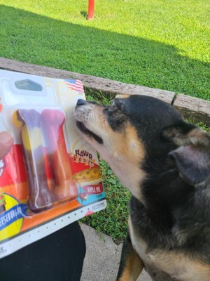 [This review was collected as part of a promotion.] Nylabone flavor frenzy bacon cheeseburger and apple pie twin pack dog toy for small dogs. My Rebel love them. They last a long time, and are prefect for small dogs. Will occupy for hours. I highly recommend them.
