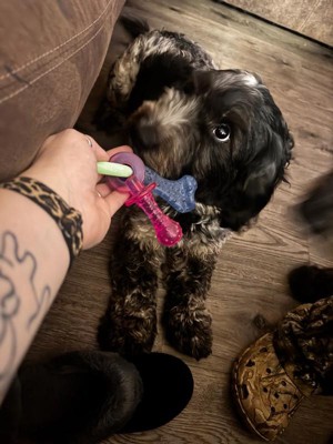 [This review was collected as part of a promotion.] As a pet mom, this Nylabone teething chew has been a lifesaver for my pup! 🐶 It’s tough, keeps him busy, and really helps with his teething. No mess, no shredded couch — just happy chomps! Highly recommend for any puppy going through that teething stage!