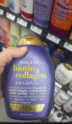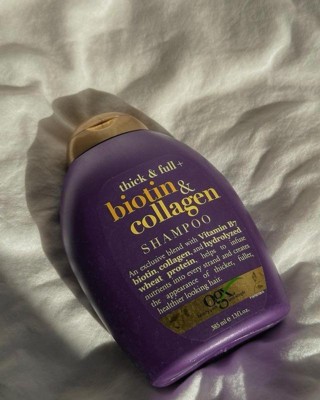 - Add body to fine strands with OGX Extra Strength Biotin & Collagen Shampoo