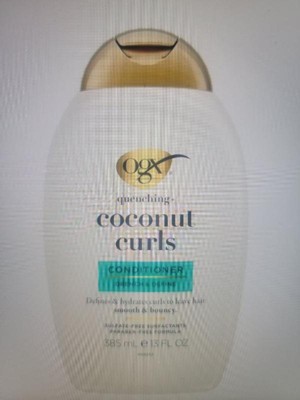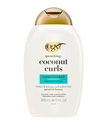 The OGX Quenching Coconut Curls Conditioner deeply