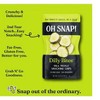 OH SNAP!® Dilly Bites® are the original and bestselling fresh dill pickle snacking chips. Perfectly crisp for a satisfying crunch and packed with dill flavor. OH SNAP!® is pickling made perfect. We’re passionate about making grab-n-go snacks that are seriously crunchy, seriously delicious and gluten-free, fat-free and non-GMO. Our innovative process means OH SNAP! snacks stay cold from the moment they’re picked to the moment you pick them up, ensuring peak freshness and the perfect crunch. Then we pack ‘em with no additional brine so there’s no mess and no stress when you’re snacking on-the-go. It’s time to snap out of the ordinary with OH SNAP!® Dilly Bites®. The perfect snack, in a snap™.