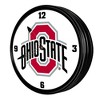 This premium Ohio State University Retro Lighted Wall Clock will be sure to add the finishing touch to any room in your home or office. This piece is injection molded and features a high-resolution, high gloss digitally printed face. Comes with an 8 foot power cord and an on/off pull switch for the light. LED illuminated. Hanging hardware and light bulb included. This is an officially licensed product of Ohio State and made in the USA.