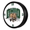 This premium Ohio University Retro Lighted Wall Clock will be sure to add the finishing touch to any room in your home or office. This piece is injection molded and features a high-resolution, high gloss digitally printed face. Comes with an 8 foot power cord and an on/off pull switch for the light. LED illuminated. Hanging hardware and light bulb included. This is an officially licensed product of OU and made in the USA.