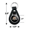 - DURABLE LEATHER KEYCHAIN: Give your keys some street cred with our leather keychain with durable resin-topped emblem. Pocket-sized for convenience, this keychain easily stows away in purse, pocketbook, or evening bag. The easy-to-spot image makes it perfect for keeping track of that special set of keys.