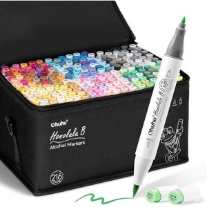 Ohuhu Alcohol Based Brush Markers -Double Tipped Art Marker Set - Brush & Fine Dual Tips - 216 Colors - Honolulu B of Ohuhu Markers - Refillable Ink