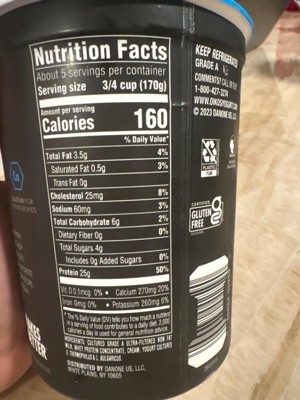 My go to high protein yogurt. I love the taste and it has a soft texture. It helps to hit my protein goal and its also my pre workout snack. Its plain and you could mix it with anything. 170g of this yogurt has 25g of protein which in my opinion is great.