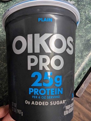 [This review was collected as part of a promotion.] The oikos pro plain contains lots of protein in each serving. It doesn't contain any added sugar as it is super great for people that want to lose weight.