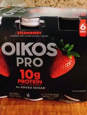 - STRONGER MAKES EVERYTHING BETTER: Six 3.1 fl oz bottles of Oikos Pro Shots Strawberry Cultured Dairy Drinks made with ultra-filtered milk