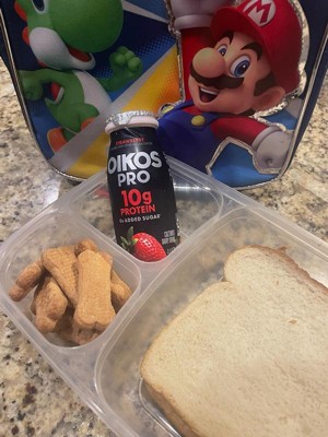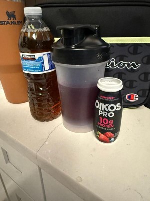 Go Pro with Oikos Pro Shots Strawberry Cultured Dairy Drink. This cultured dairy drink packs a punch with 10g of protein, so you can always have high protein snacks to help you add more protein to your day. Every 3.1 fl oz serving of these snacks contains 9 essential amino acids, in addition to vitamins B2, B6 and B12. There’s 0g of added sugar* per 3.1 fl oz serving, and no artificial flavors or colors from artificial sources. Protein is an essential nutrient and Oikos Pro drinks are great tasting, convenient solutions for adding complete protein every day. Grab these on the go snacks for days that start at a sprint. Oikos Pro — Stronger Makes Everything Better (R). *Not a low-calorie food.