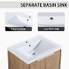 This bathroom vanity offers significant advantages: a user-friendly design with splash and overflow protection for enhanced ease of use; high-quality materials, including a ceramic basin and moisture-proof cabinet, ensure durability and ease of cleaning; a versatile overall style that complements a variety of decor styles; and a wide selection of colors to suit different bathroom tones and individual aesthetics.
