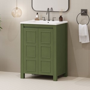 Product Name: Okak 24" Retro Bathroom Vanity with Sink Solid Wood Frame, Freestanding Bathroom Painted Finish Storage Cabinet with Soft Closing Doors, Olive Green