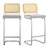 Product Name: Okak 30 Inch Counter Stools Set of 2, Upholstered PU Leather Barstools with Natural Rattan Back, Armless Bar Chairs for Kitchen Island, Gray