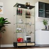 Okak 16/32in Modern Display Case, Glass Bookshelf with 4 Shelves and Drawer, Cube Storage Organizer for Living Room and Bedroom
