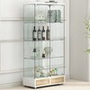 Okak 16/32in Modern Display Case, Glass Bookshelf with 4 Shelves and Drawer, Cube Storage Organizer for Living Room and Bedroom