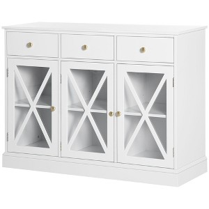 Product Name: Okak 45" Farmhouse Sideboard Cabinet for Living Room Coffee Bar Cabinet with Glass Doors and 3 Drawers,White