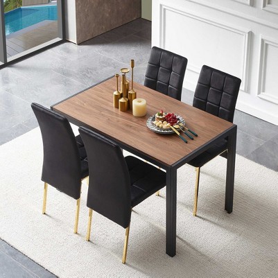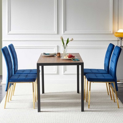 Product Name: Okak 5-Piece Dining Set Kitchen Table Set, Wood Table with 4 Velvet High Back Dining Chairs for Kitchen Dining Room Furniture, Blue