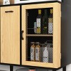 - Refined Aesthetics: Combines cabinet doors, louvered accents, a warm wood-grain countertop, and sleek round metal handles for elevated kitchen style.