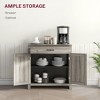 - Ample Storage Space: This storage cabinet features a drawer and a two-door cabinet for dinnerware, towels, and dry goods, while the wide tabletop offers a spot for the microwave.