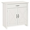 - Ample Storage Space: This storage cabinet features a drawer and a two-door cabinet for dinnerware, towels, and dry goods, while the wide tabletop offers a spot for the microwave.