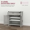 - Ample Storage Space: This storage cabinet features a drawer and a two-door cabinet for dinnerware, towels, and dry goods, while the wide tabletop offers a spot for the microwave.