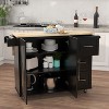 Okak Kitchen Island with Extensible Solid Wood Tabletop, Rolling Kitchen Cart with 2 Doors and 3 Drawers, Countertop Organizer for Home, Black