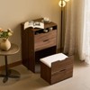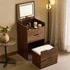 Product Name: Okak Modern 3-in-1 Vanity Table with Mirror & Lights,Small Dressing Desk with Storage Bench,Makeup Table Set for Bedrooms,Walnut23.62"