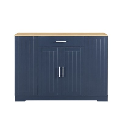 Product Name: Okak Modern Kitchen Island with Drawers and Trash Can Storage, Kitchen Island On Wheels with Metal Handles, Kitchen Cart for Dining Room, Navy Blue