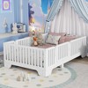 Okak Modern Twin/Full Montessori Floor Beds with Slats & Fence,Wooden Platform Bed for Kids Room,Bedroom,No Box Spring Needed