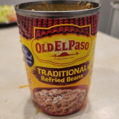 The can of traditional syle refried Beans, when I opened them it was like refried bean soup. We ended up tossing them out. Lately, every time I buy Old El Paso beans they are watery. The are not like they used to be. They are more water less beans. I don't know if quality control has relaxed or they are just made more cheaply. I will definitely try another brand.
