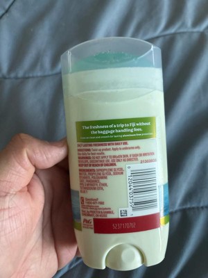 [This review was collected as part of a promotion.] This deodorant smells nice; what I imagine Fiji would smell like. It goes on easily and lasts awhile. There’s no residue and doesn’t get on clothes like some other deodorants.