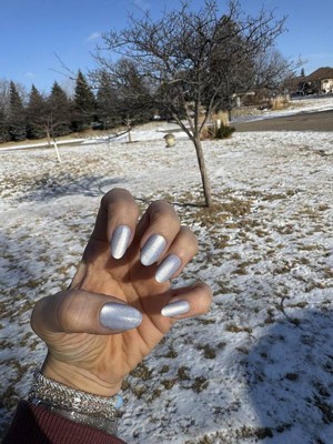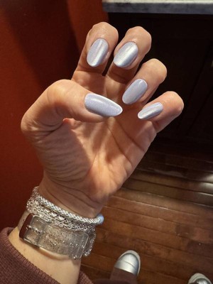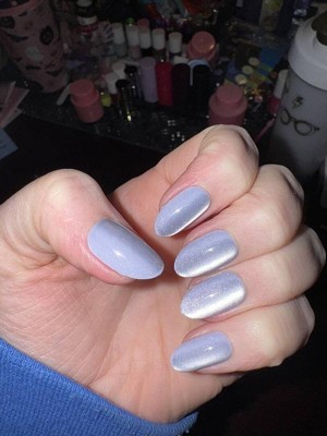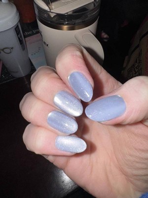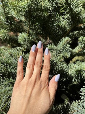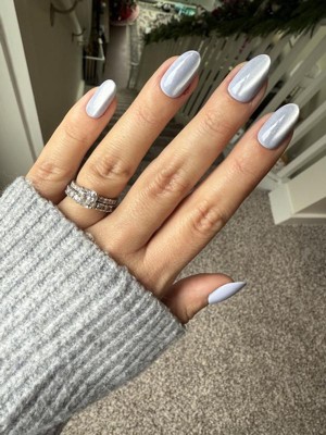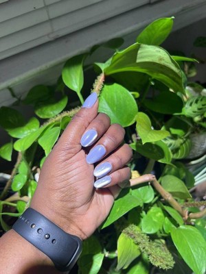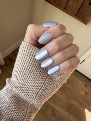 - A velvet effect icy blue manicure in a medium oval shape -Easy on, easy off press-on nails with adhesive tabs.