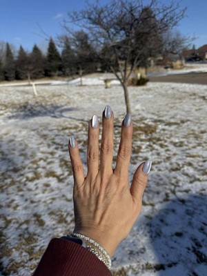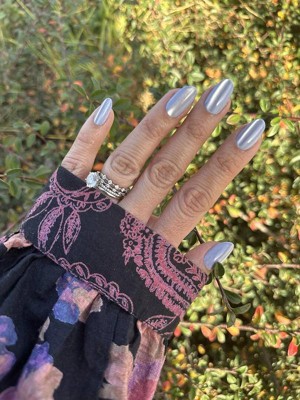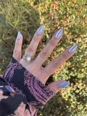 [This review was collected as part of a promotion.] Loved BP with is velvet finish!!! I don’t usually reach for BP but with velvet finish it looked silvery at times. I got compliments while out and about how pretty my nails were. They look natural, great length on me; no one guessed they were press-ons. Easy to apply. I work at a hardware store so I’m a little hard on my hands; they last until day 13 before I one popped off. Absolutely love this color and finish together!! I recommend OJ products very time I’m asked about my nails.