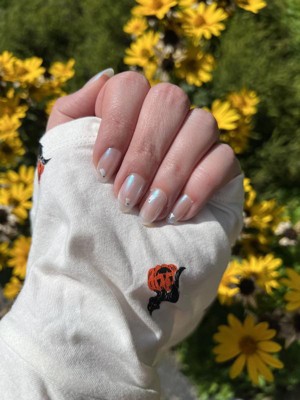 [This review was collected as part of a promotion.] I’m a huge O&J fan. I didn’t love the iridescent look of the nails because it was very easy to see my natural nails underneath them. The ghosts are cute with their fun flair while still being subtle. Even after following all the prep steps fully, I still had a nail come off the day after they were applied. I had another come off the day after that. The glue tabs seem to work better with the super stick mani vs the instant mani. Still a big fan of O&J this was just a miss for me.