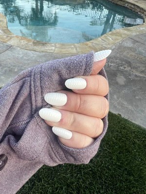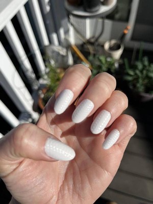 [This review was collected as part of a promotion.] I wore these for a week and honestly wasn’t sure about them at first. They definitely grew on me! The texture is so cool and visible, but the clean white look makes them versatile for so many occasions. The only problem with these nails was that I could not stop touching them. The texture is so cool!