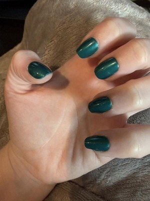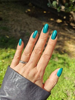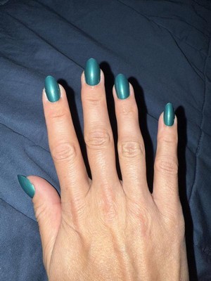[This review was collected as part of a promotion.] These emerald chrome press ons are the perfect vampy look for fall! As always, the application was easy and the nails are beautiful. My natural nails don't grow this long naturally, so I love having the option of these press ons to play with length.